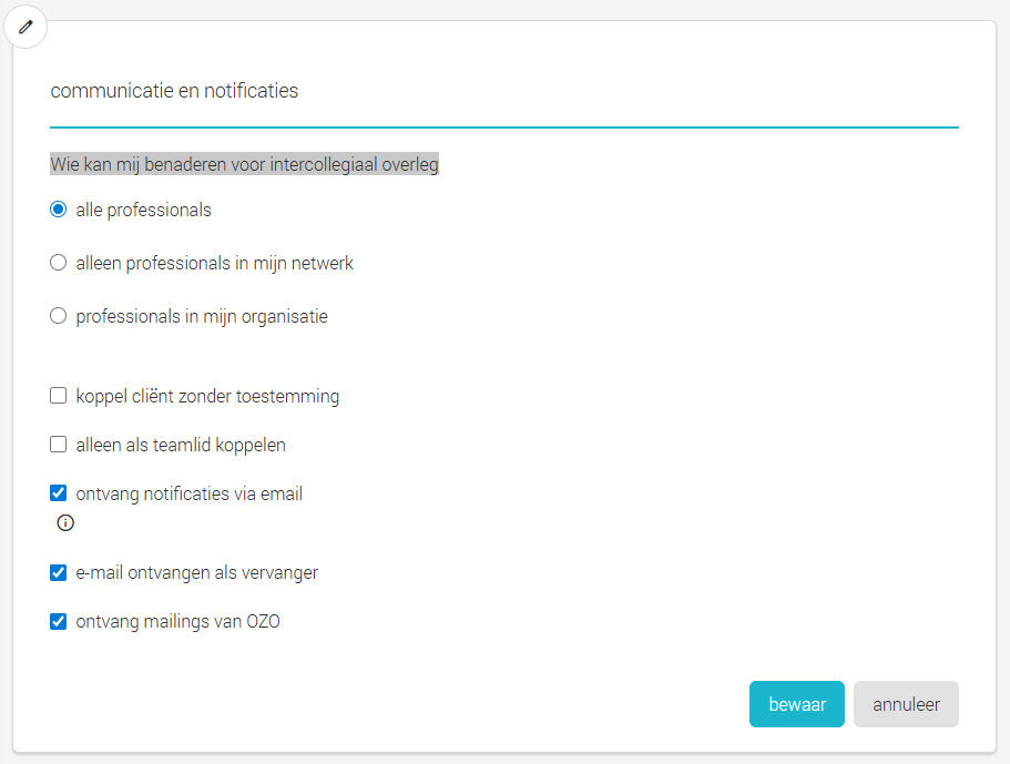 Iedereen met een account in OZOverbindzorg kan mij benaderen. - alleen professionals in mijn netwerk